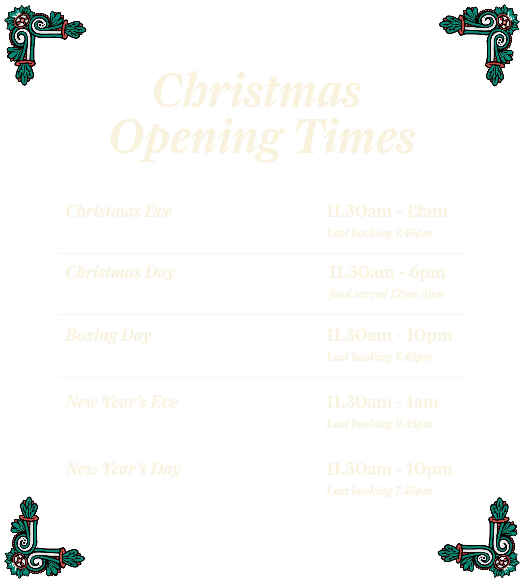 Please note: Christmas Day is now fully booked, but you are very welcome to join us for a drink in our Tap Room on the day!